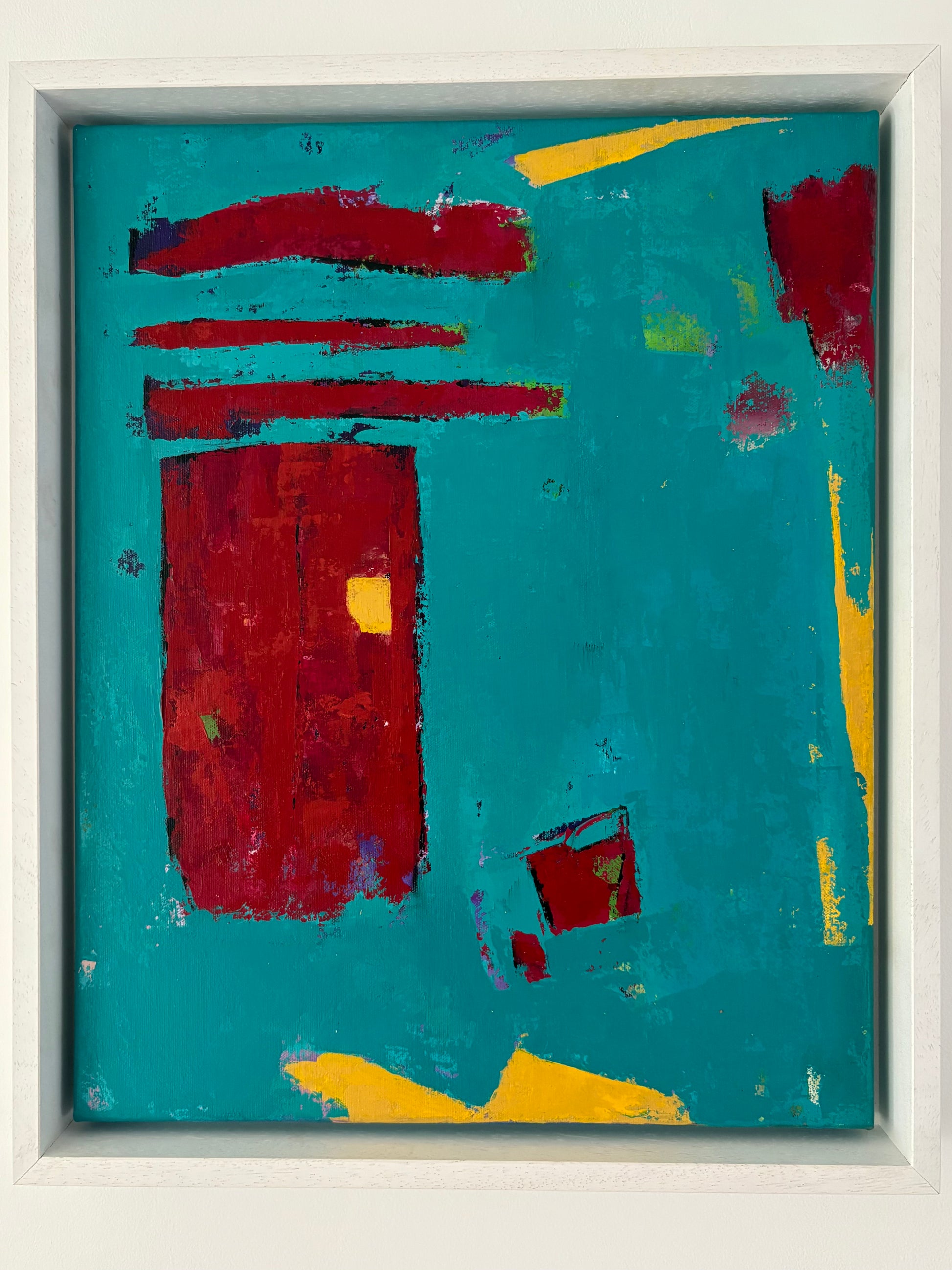 Acrylics on premium canvas and framed with white wooden float frame.