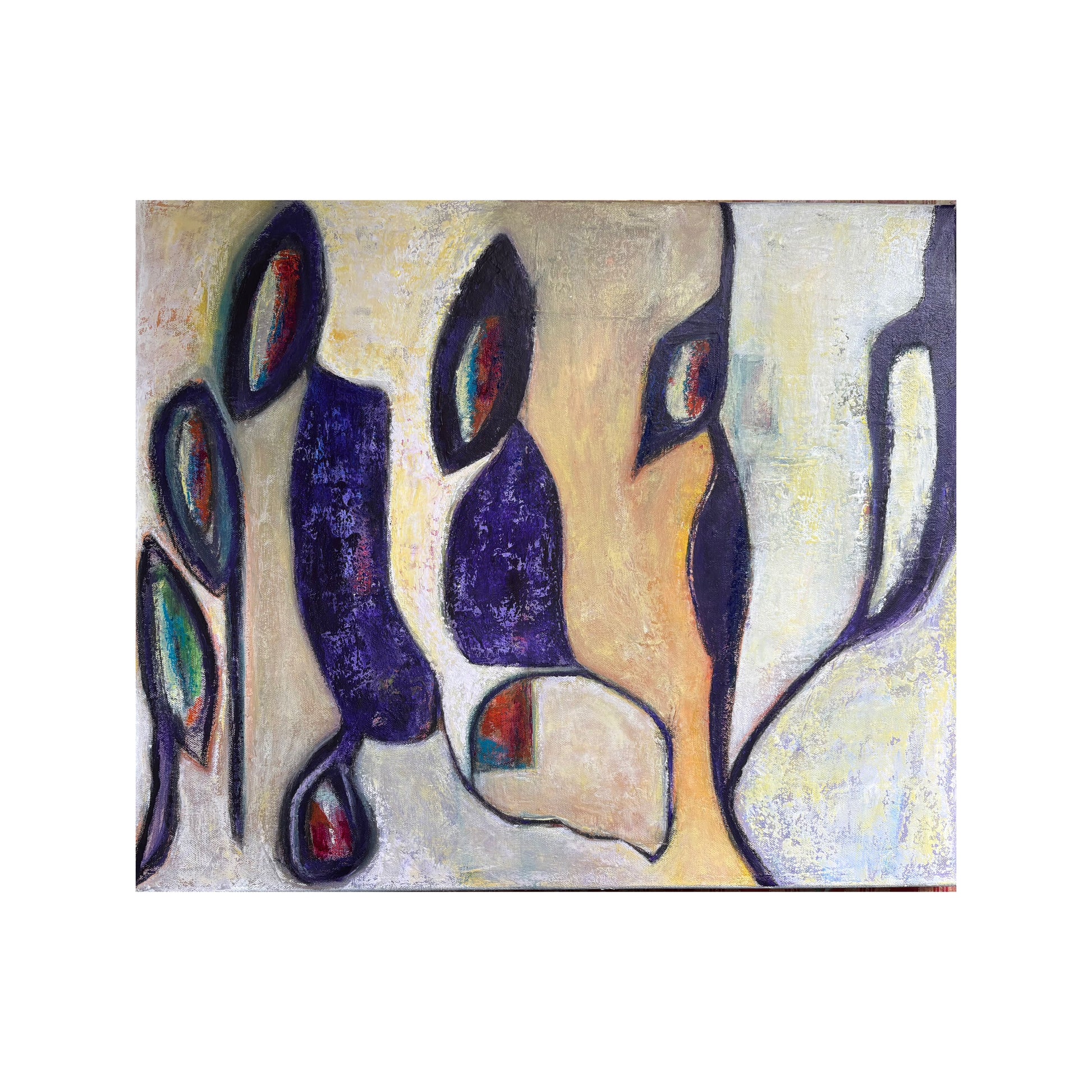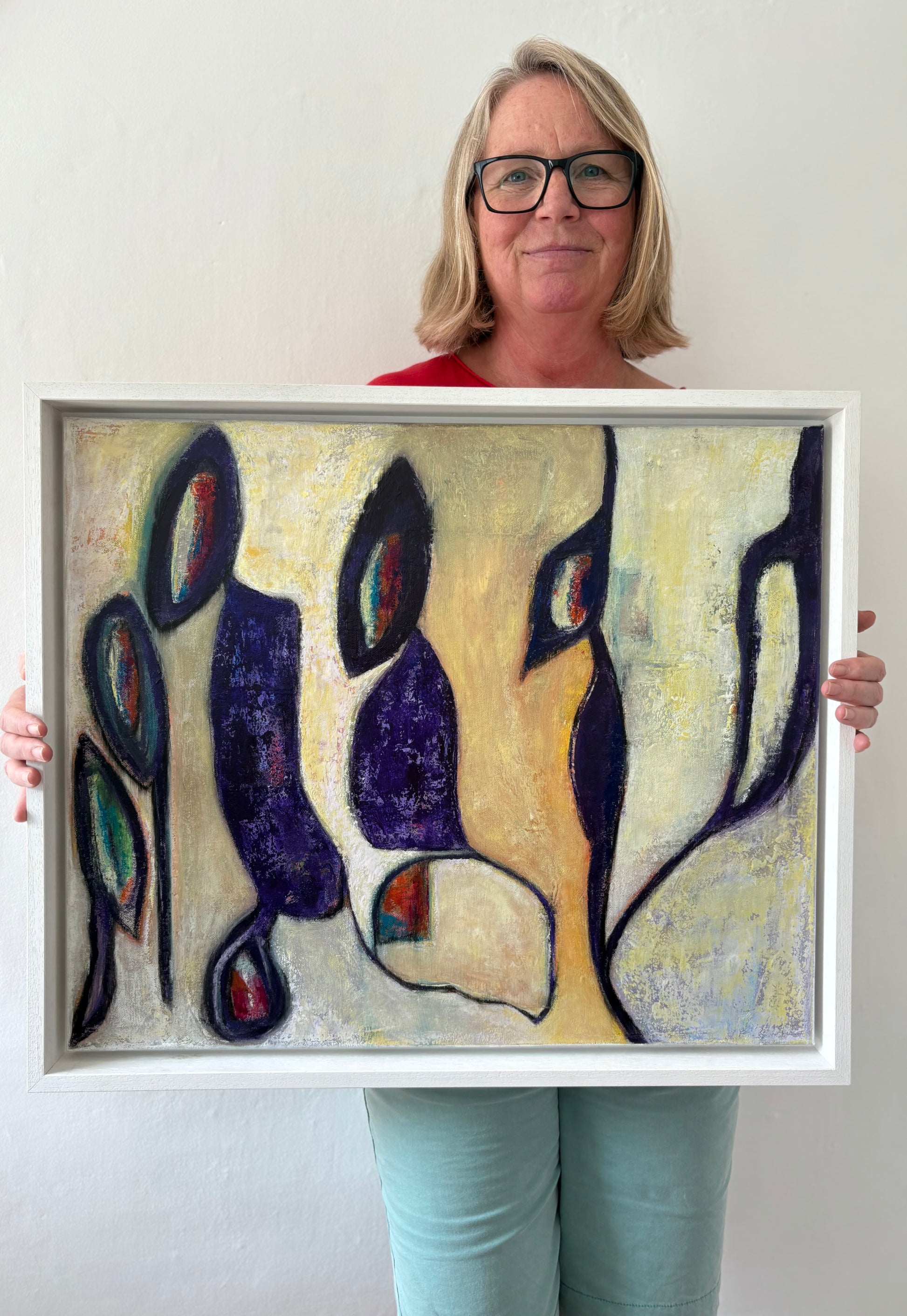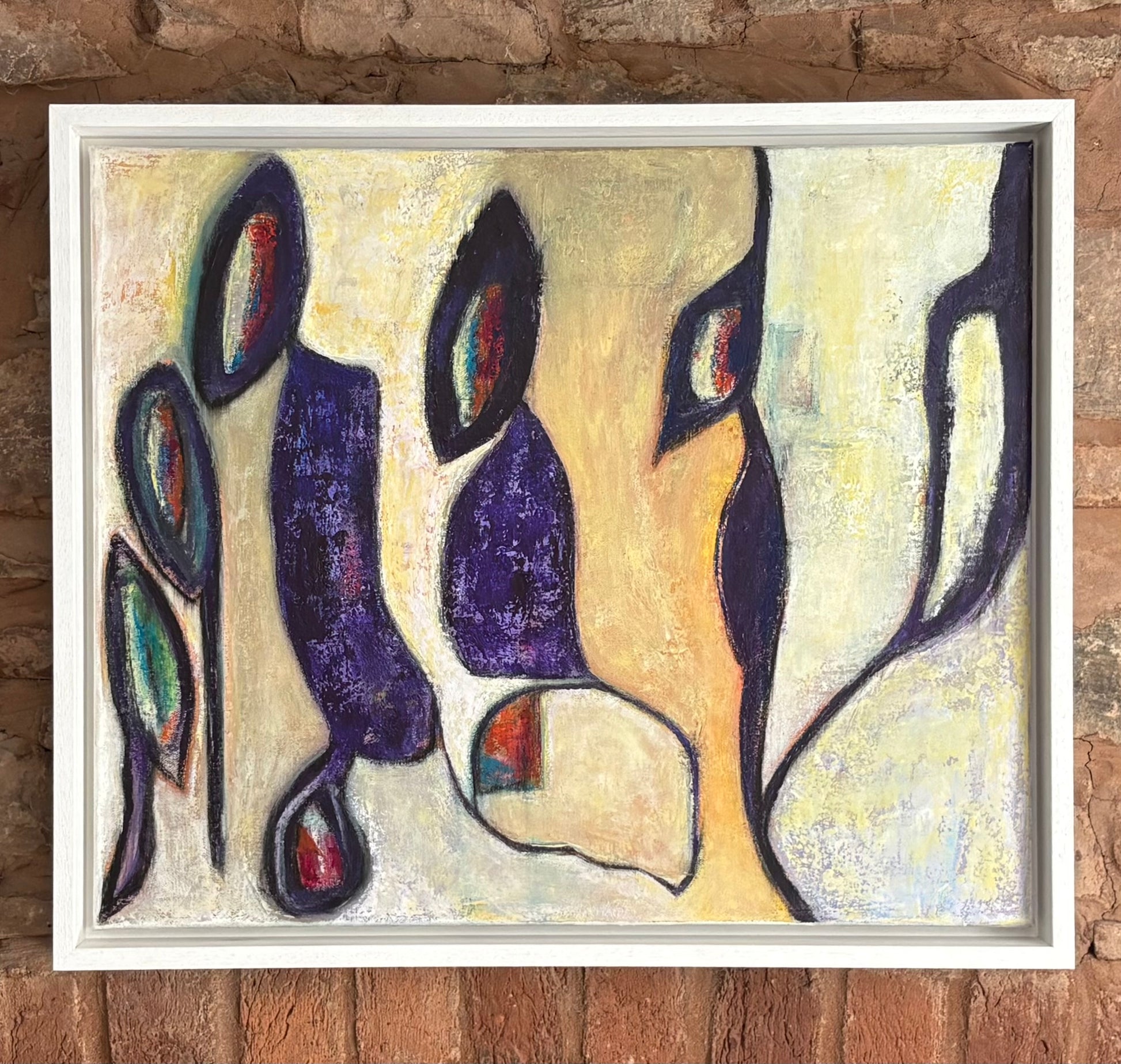 Acrylics on canvas, framed in white float frame.