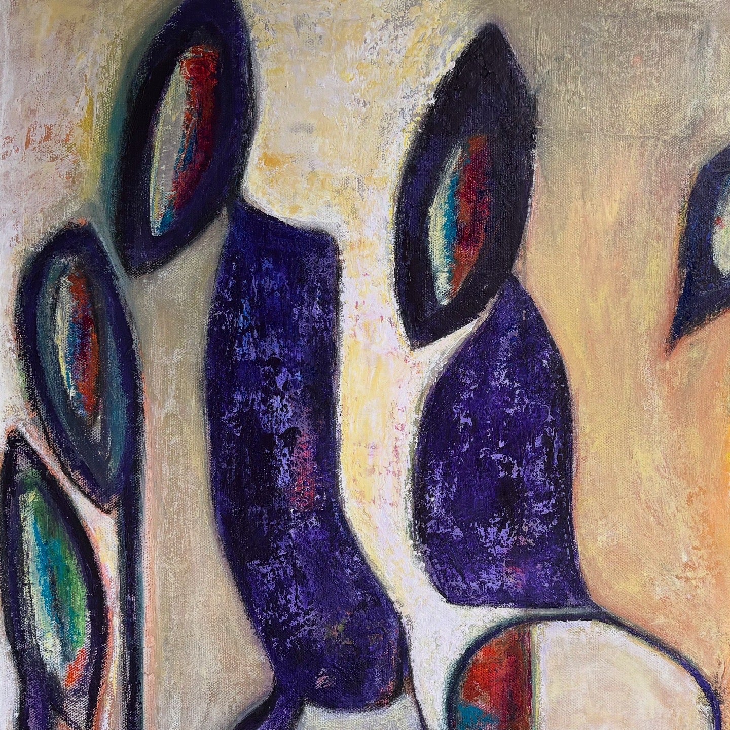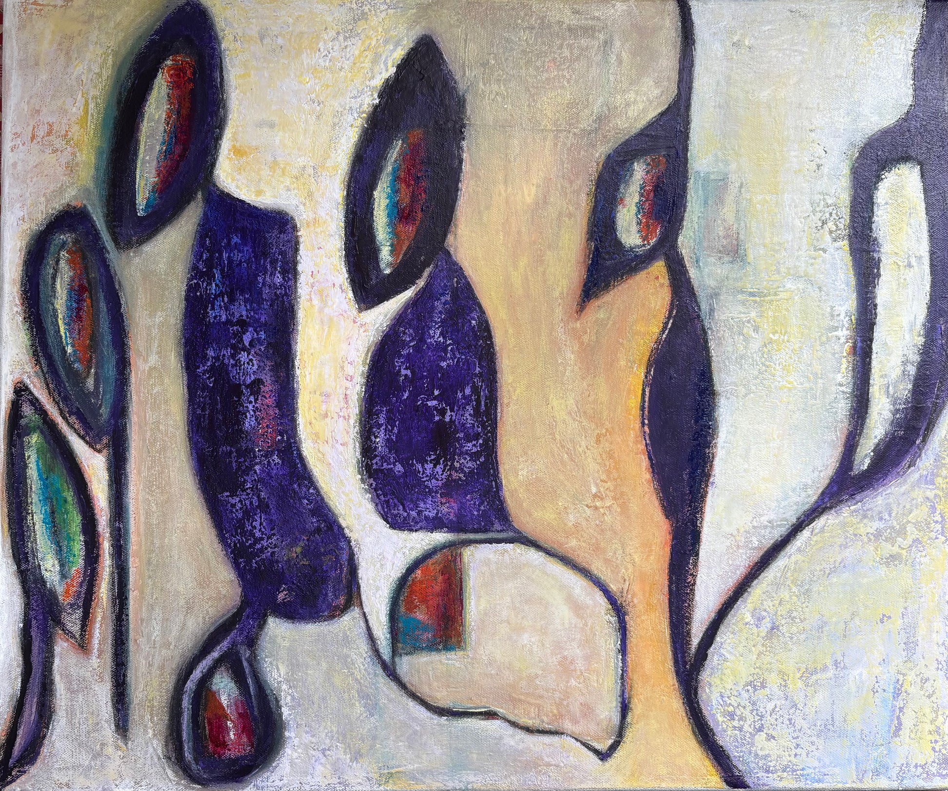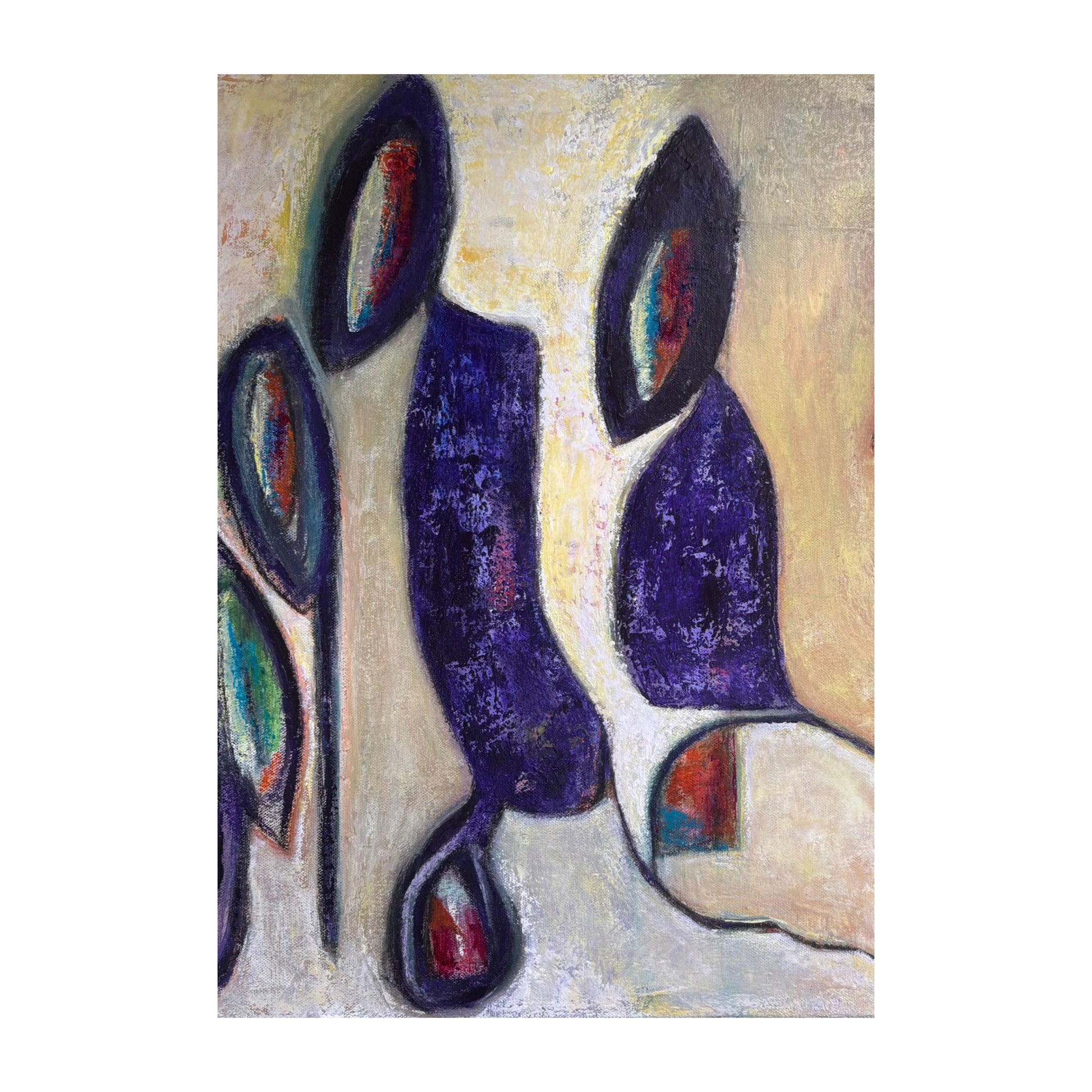 Acrylics on canvas, framed in white float frame.